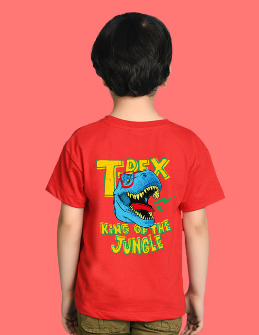 Nusyl Boys Red T-Rex Text Printed Short Sleeve Oversized T-Shirt