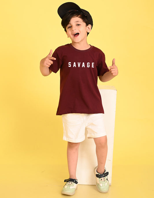 Nusyl Boys Wine Savage Text Printed Short sleeve Cotton Blend Oversized T-shirts