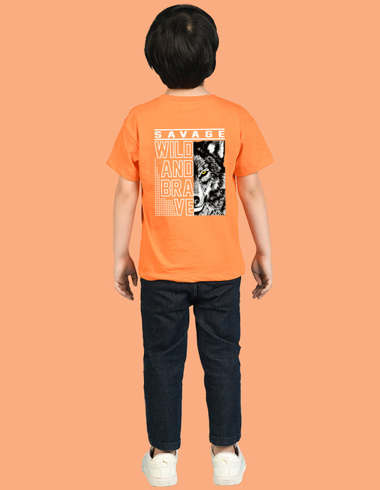 Nusyl Boys Orange Savage Text Printed Short sleeve Cotton Blend Oversized T-shirts