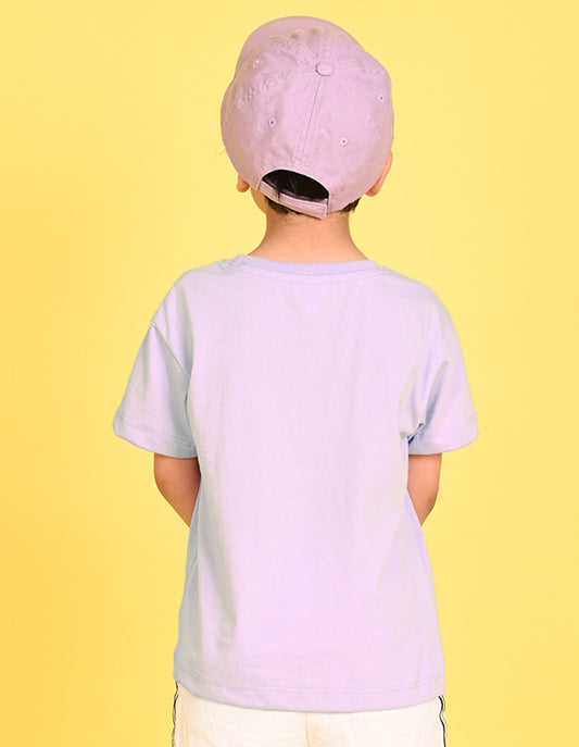 Nusyl Boys Lilac Slipe Text Printed Short sleeve Cotton Blend Oversized T-shirts