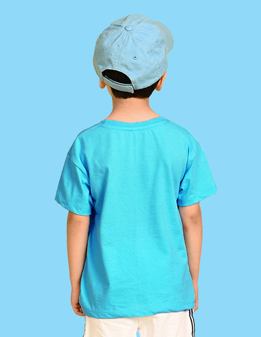 Nusyl Boys Sky Blue Dinosaur & Text Printed Short sleeve Cotton Blend Oversized T-shirts
