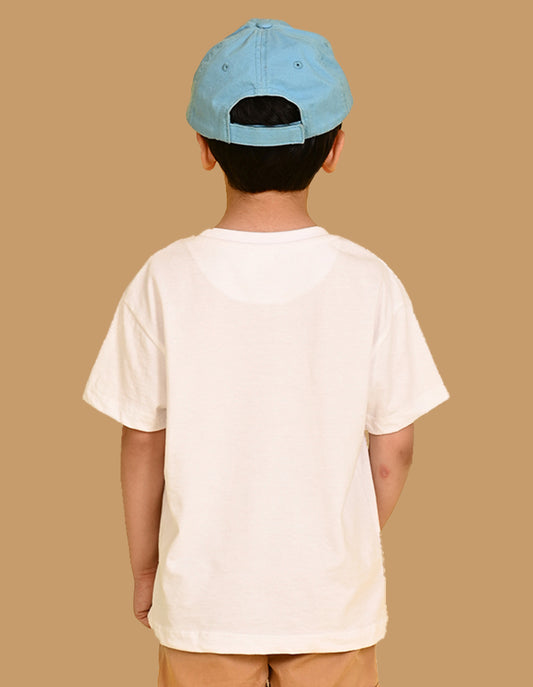Nusyl Boys White Adventure Text Printed Short sleeve Cotton Blend Oversized T-shirts