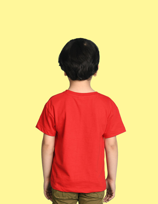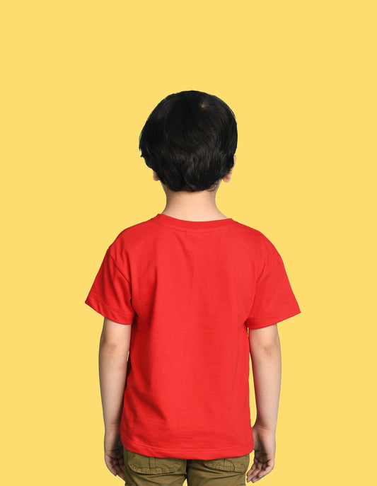 Nusyl Boys Red Adventure Text Printed Short sleeve Cotton Blend Oversized T-shirts