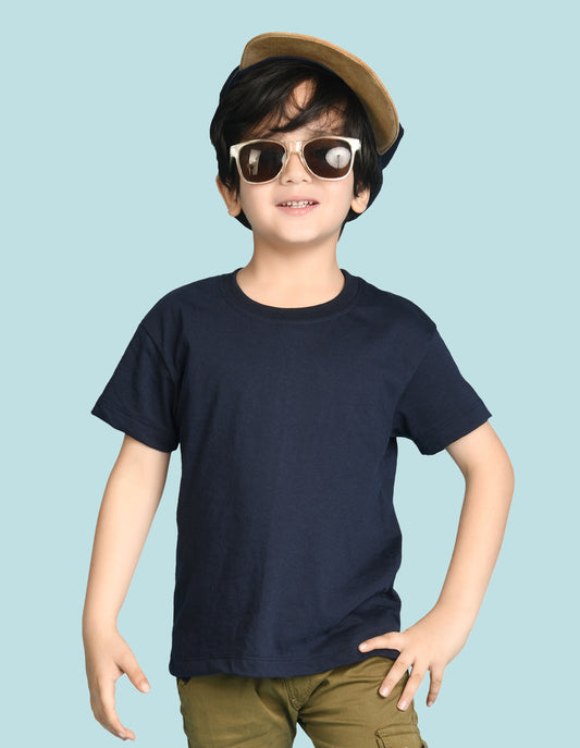 Nusyl Boys Black Bio Washed Cotton Short Sleeve Solid T-shirt