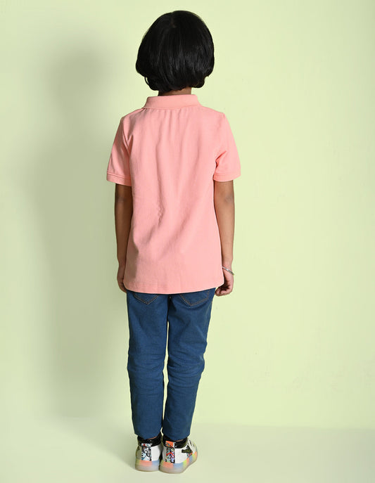 Nusyl On the move Printed Peach Boys polo T-shirts
