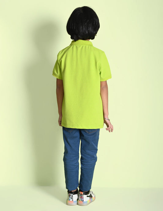 Nusyl Be original Printed Lime green Boys polo T-shirts