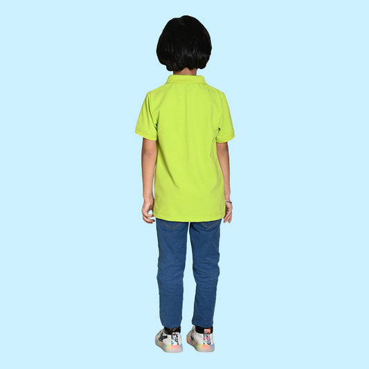 Nusyl Cars Printed Lime green Boys polo T-shirts