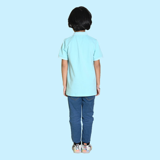 Nusyl Cars Printed Light blue Boys polo T-shirts