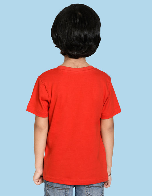 Nusyl boys think outside the box printed red colored cotton rich tshirt