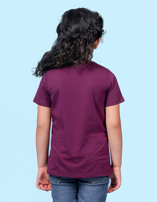 Nusyl Girls Wine Cute And Pretty Printed Cotton Half Sleeve Regular Fit T-Shirts for Girls