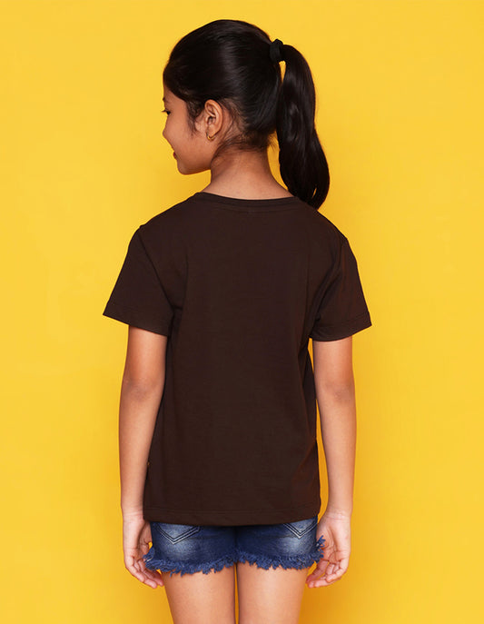 Nusyl Girls Brown Cute And Pretty Printed Cotton Half Sleeve Regular Fit T-Shirts for Girls