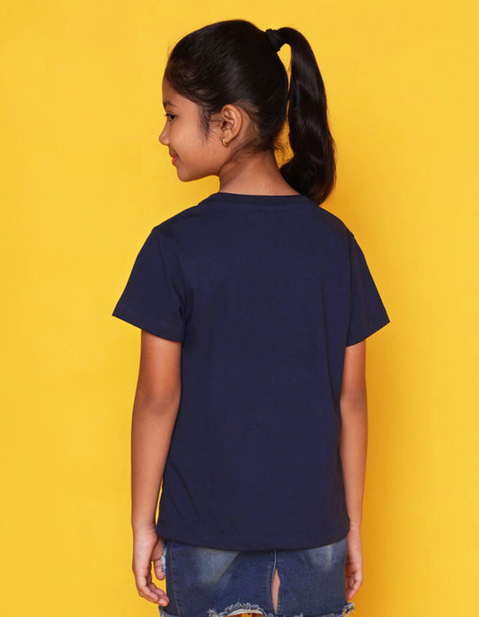 Nusyl Girls Navy Blue Magic is Real Text Printed Cotton Half Sleeve Regular Fit T-Shirts for Girls
