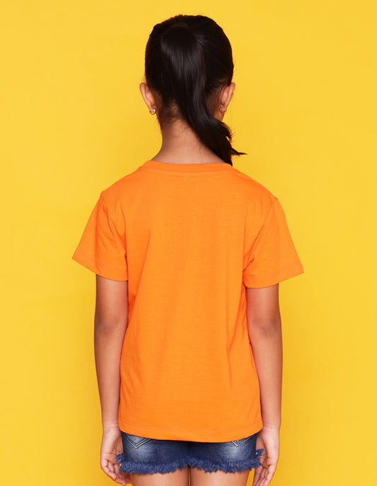 Nusyl Girls Orange Cute And Pretty Printed Cotton Half Sleeve Regular Fit T-Shirts for Girls