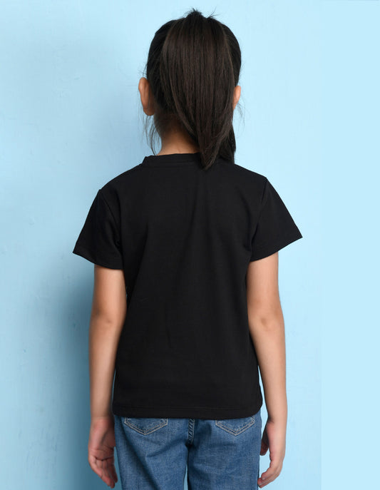 Nusyl Girls Black Girls & Heart Printed Cotton Half Sleeve Regular Fit T-Shirts for Girls