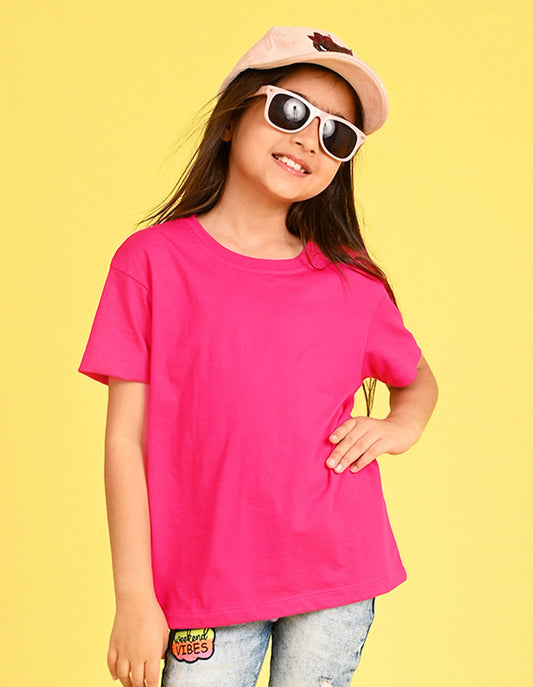 Girls Hot Pink Bio Washed Cotton Short Sleeve Solid T-shirt