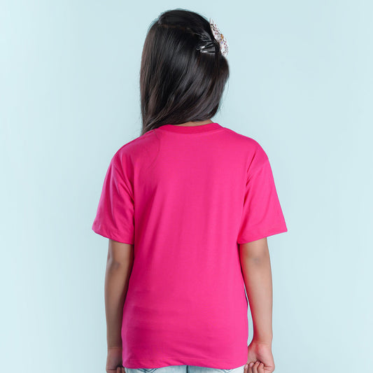 Nusyl Girls Hot Pink Printed Oversized T-shirt