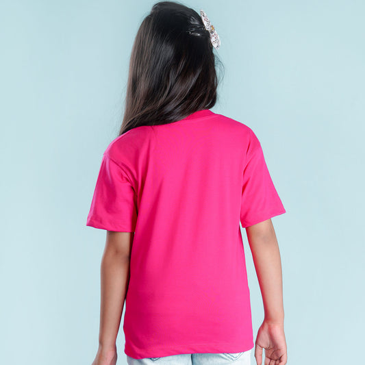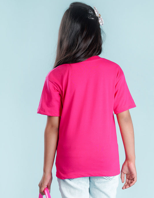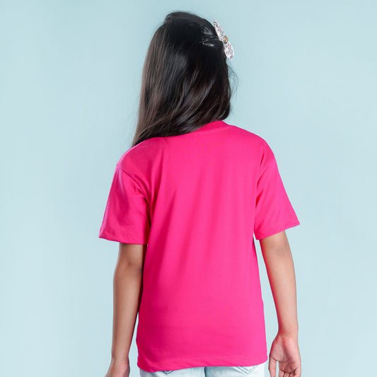Nusyl Girls Hot Pink Printed Oversized T-shirt