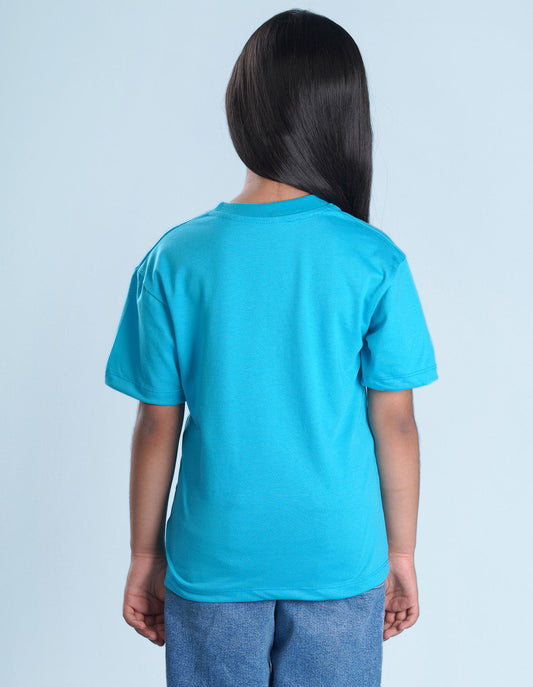Nusyl Girls Sky Blue Printed Oversized T-shirt