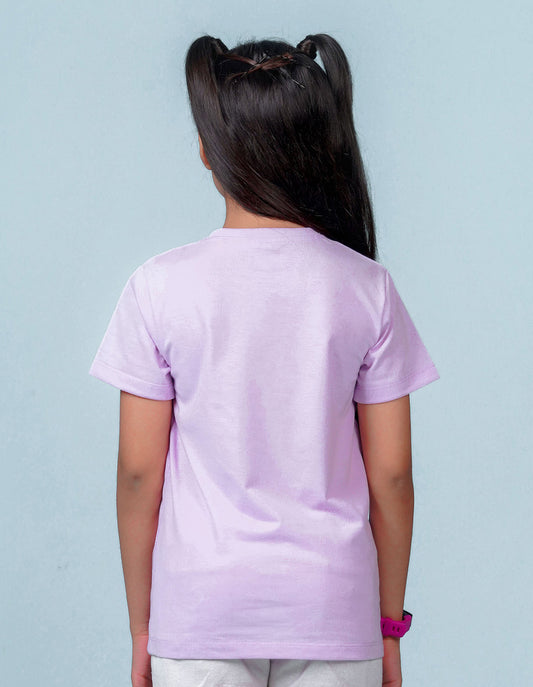 Nusyl Girl's Lilac Little Star Text Printed Regular Fit T-Shirt
