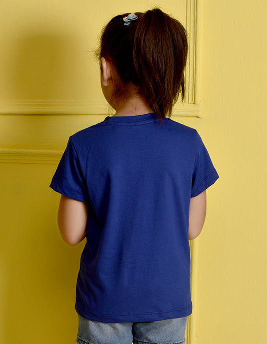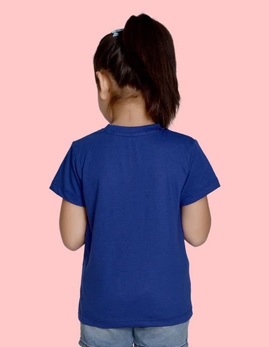 Nusyl Girl's Royal Blue Hello Weekend & Cat Printed Regular Fit T-Shirt