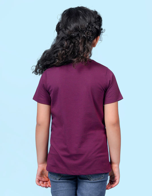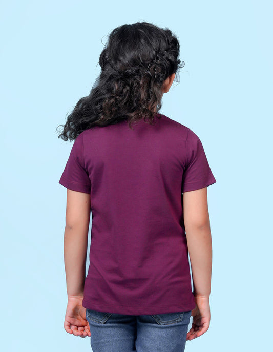 Nusyl Girl's Wine Little Star Text Printed Regular Fit T-Shirt