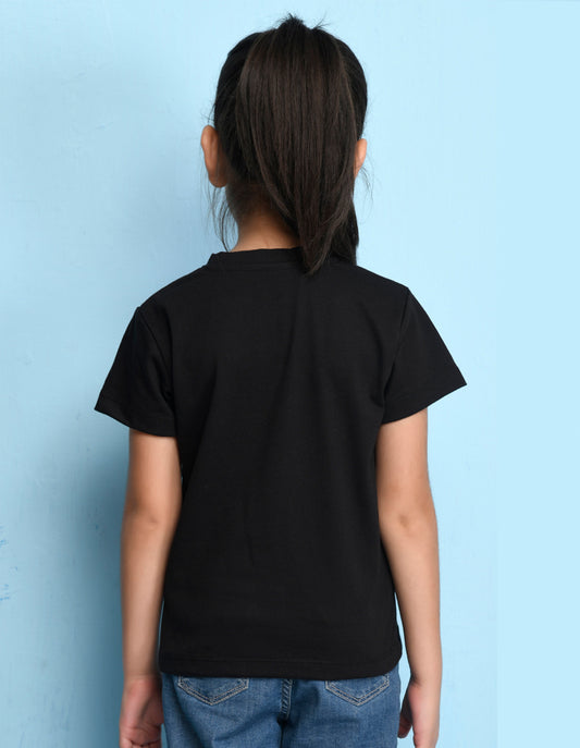 Nusyl Girl's Black Hello Weekend & Cat Printed Regular Fit T-Shirt