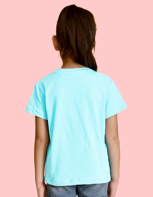 Nusyl Girl's Sky Blue Little Star Text Printed Regular Fit T-Shirt