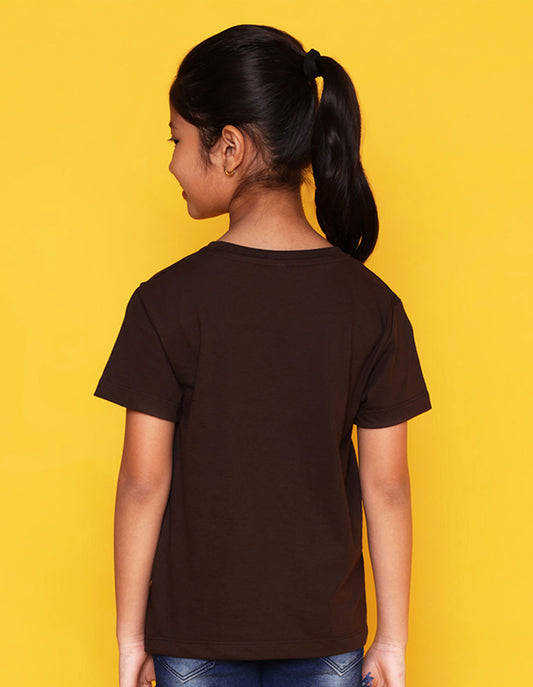 Nusyl Girl's Brown Happy Text Printed Regular Fit T-Shirt