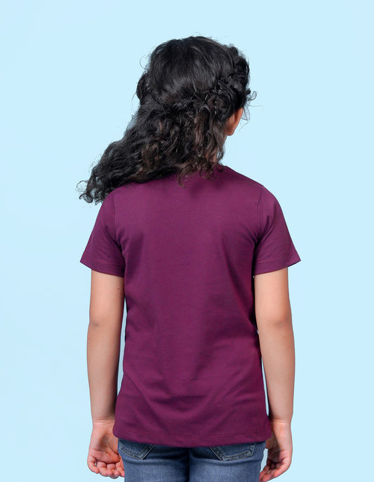 Nusyl Girl's Wine Flamingo Cute Girl Printed Regular Fit T-Shirt