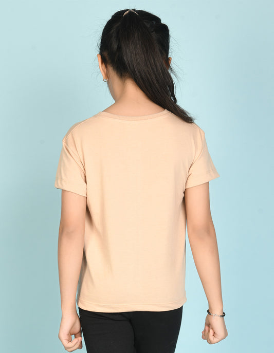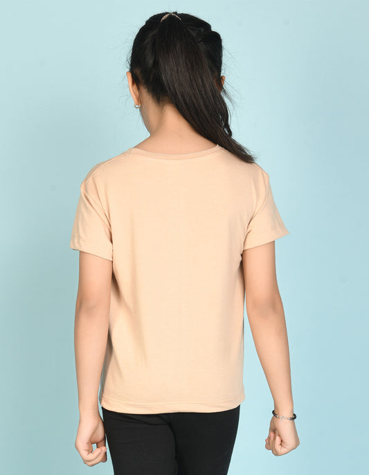 Nusyl Girl's Beige Cute Teddy Bear & Text Printed Regular Fit T-Shirt