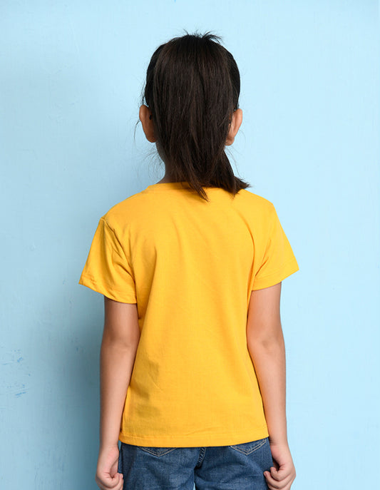 Nusyl Girl's Yellow Mini Boss Text Printed Regular Fit T-Shirt