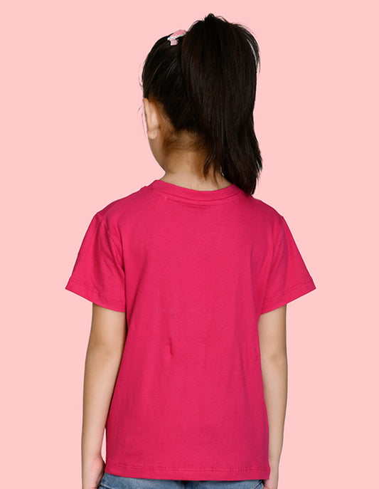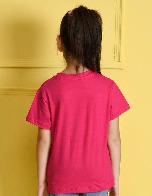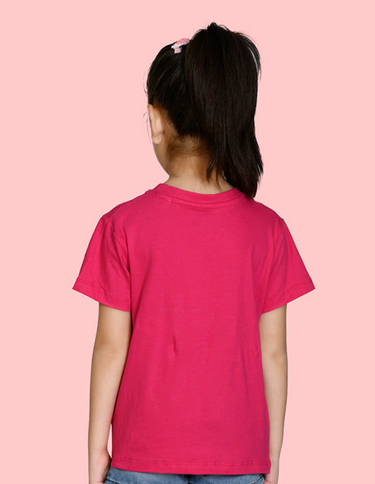 Nusyl Girl's Hot Pink Cute Teddy Bear & Text Printed Regular Fit T-Shirt