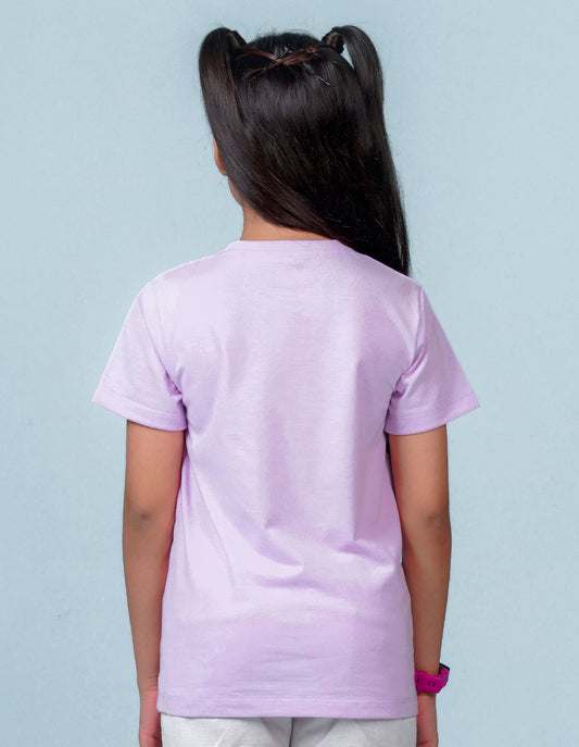 Nusyl Girl's Lilac Cute Teddy Bear & Text Printed Regular Fit T-Shirt