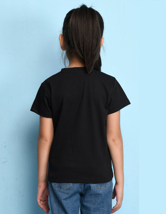 Nusyl Girl's Black Mini Boss Text Printed Regular Fit T-Shirt