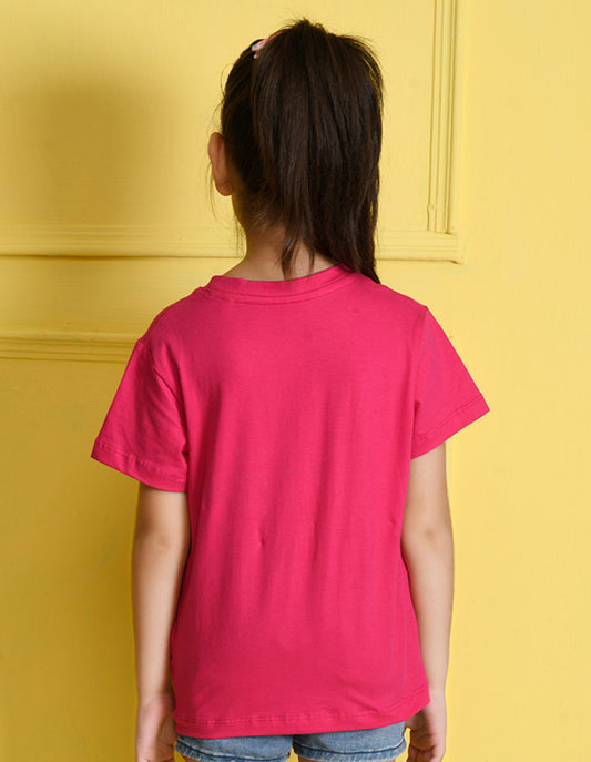 Nusyl Girl's Hot Pink Shine Bright Text Printed Regular Fit T-Shirt