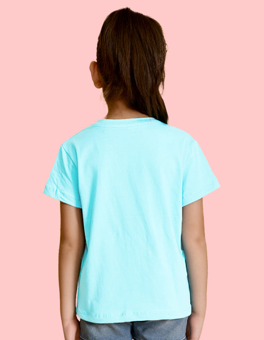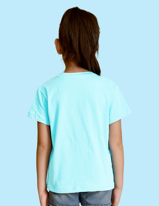 Nusyl Girl's Sky Blue Butterfly & Hope Text Printed Regular Fit T-Shirt