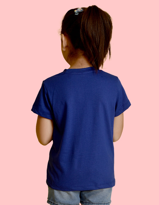 Nusyl Girl's Royal Blue Shine Bright Text Printed Regular Fit T-Shirt