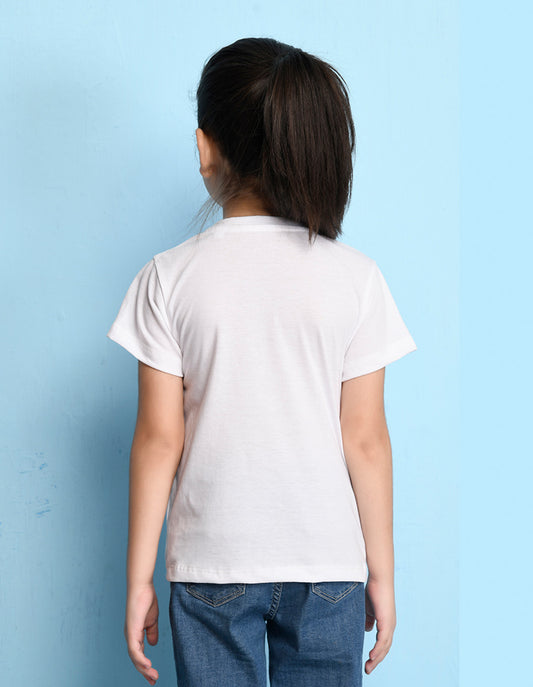 Nusyl Girl's White Flamingo Cute Girl Printed Regular Fit T-Shirt