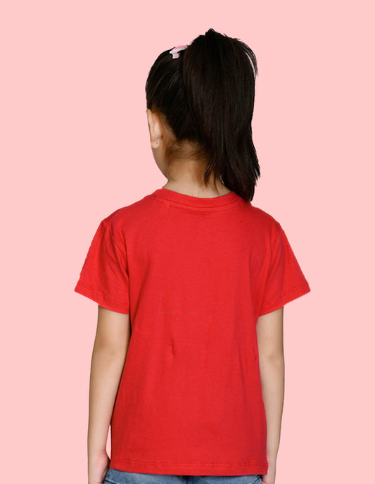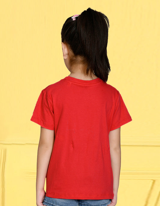 Nusyl Girl's Red Flamingo Cute Girl Printed Regular Fit T-Shirt