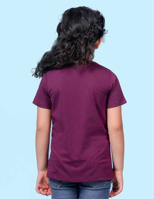 Nusyl Girl's Wine Princess Text Printed Regular Fit T-Shirt