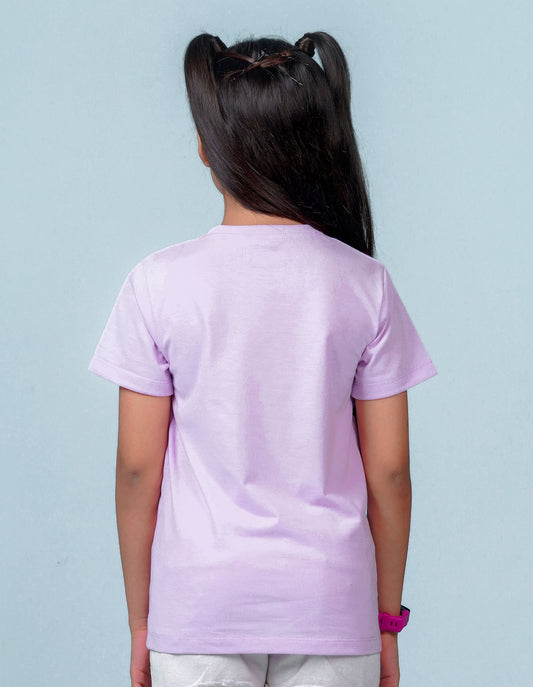 Nusyl Girl's Lilac Hello Sun Shine Text Printed Regular Fit T-Shirt