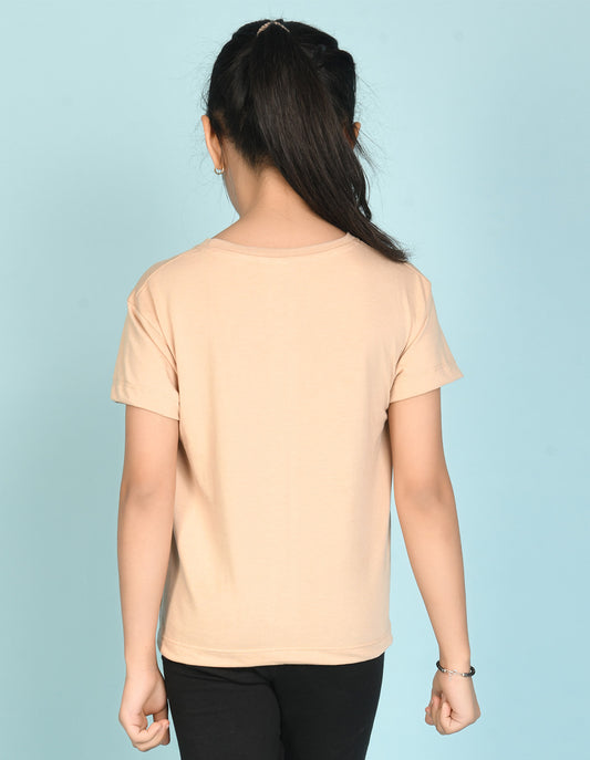 Nusyl Girl's Beige Hello Sun Shine Text Printed Regular Fit T-Shirt