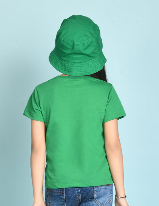 Nusyl Girl's Green Cute Girl & Text Printed Regular Fit T-Shirt