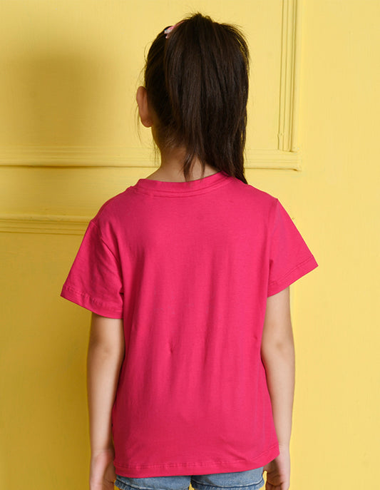 Nusyl Girl's Hot Pink Hello Sun Shine Text Printed Regular Fit T-Shirt