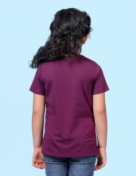 Nusyl Girl's Wine Eiffel Tower & Text Printed Regular Fit T-Shirt