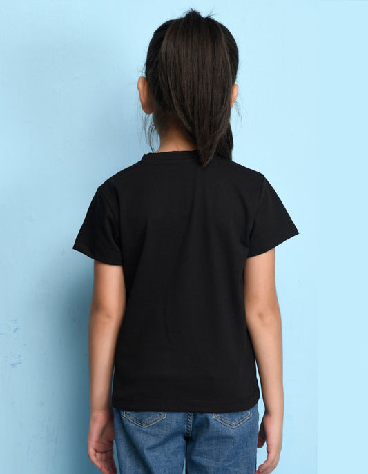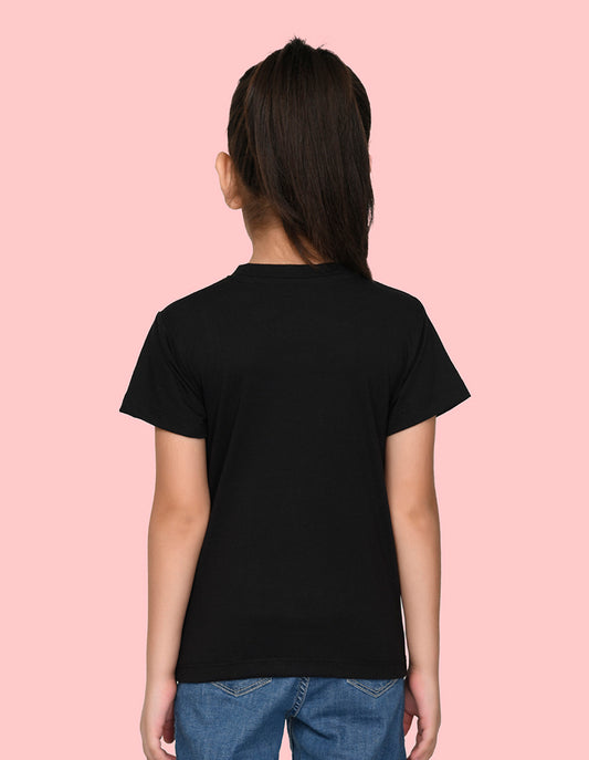 Nusyl Girl's Black Cute Girl & Text Printed Regular Fit T-Shirt