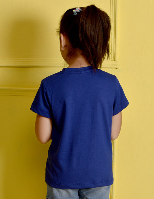 Nusyl Girl's Navy Blue Cute Girl & Text Printed Regular Fit T-Shirt