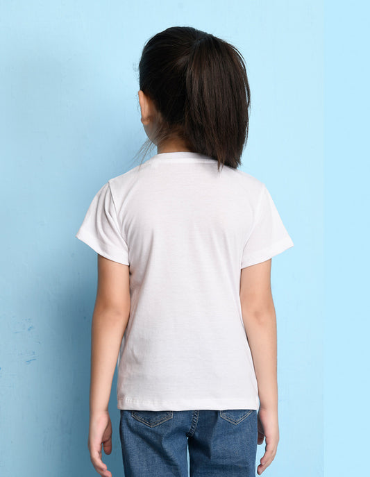 Nusyl Girl's White Cute Girl & Text Printed Regular Fit T-Shirt