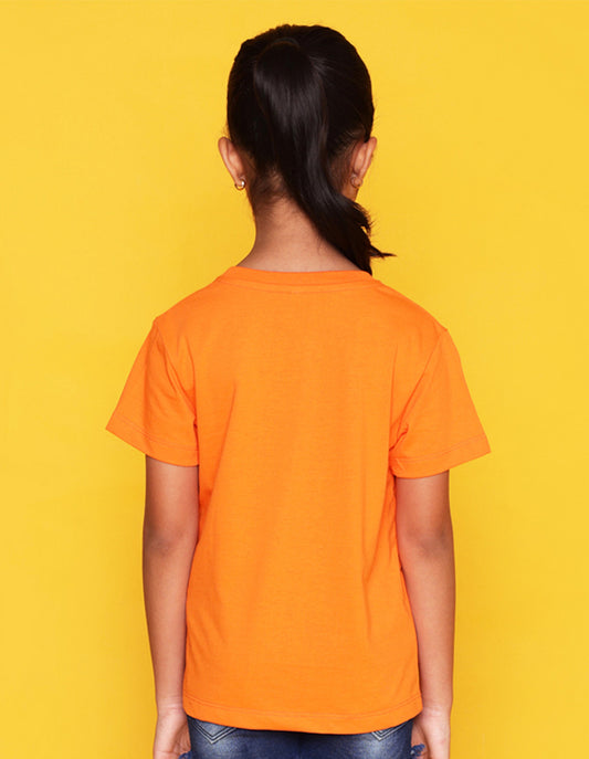 Nusyl Girl's Orange Cute cat Printed Regular Fit T-Shirt