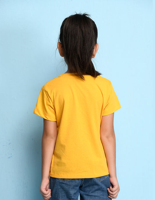 Nusyl Girl's Yellow Cute cat Printed Regular Fit T-Shirt